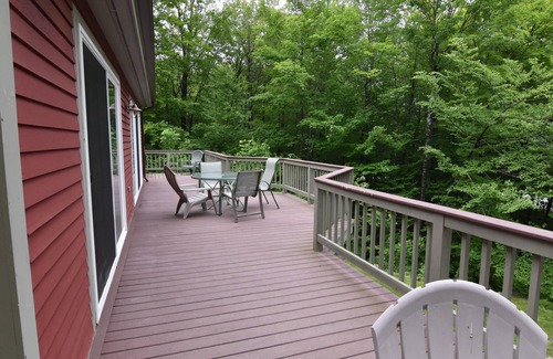 Come stay in our mountain getaway in quiet and charming Holderness NH. Large, well-maintained home on 4.5 acres with 3 bedrooms and extra futon. Huge (1100 s.f.) wrap-around deck for enjoying the outdoors. Finished basement with pool table, foosball and ping pong. Three-season sun room in the rear with 4 sliders and screens.