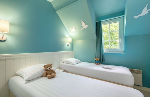 Park Le Lac d'Ailette is a large, child-friendly resort located in Chamouille, Neuville-sur-ailette, France. It offers a variety of amenities including a swimming pool, indoor heated pool (available year-round), children's pool, slide, and tennis court (additional fees apply). The resort also features a petting farm and children's playground, making it an ideal vacation rental for families. For your convenience, there are on-site facilities such as a reception, restaurant, bar, sauna, massage, steam room, hot tub (additional fees apply), bowling alley, table tennis (additional fees apply), playroom, trampoline, and shopping facilities. Internet WiFi, parking, and an installment plan are also available.