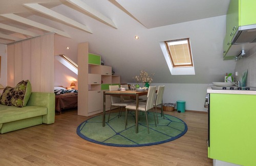 Welcome to this pleasantly furnished apartment on the top floor in Blace, right on the waterfront. In front of the building by the sea there is a wonderful communal terrace with barbecue, where you will surely enjoy spending time on days with nice weather. The apartment is so comfortably furnished that you can make yourself at home without thinking twice, if you ever feel like it, for example in the spacious living area under the peaked roof.