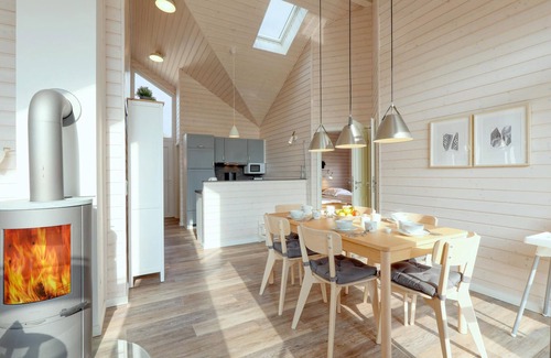 The modern wooden house impresses with its appealing Scandinavian style and offers enough space for 6 people, with a day bed in the third bedroom. The in-house sauna invites you to relax. Cosy up together in the evening by the wood-burning stove, play a game, plan the next day's activities and listen to the crackling flames.