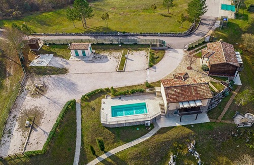 This inviting country house welcomes you in an idyllic location surrounded by the picturesque Istrian countryside. The bright rooms charm with a homely and authentic interior, here you can make yourself comfortable after your excursions, relax under decorative wooden ceilings, cook something delicious together and enjoy meals together in peace.