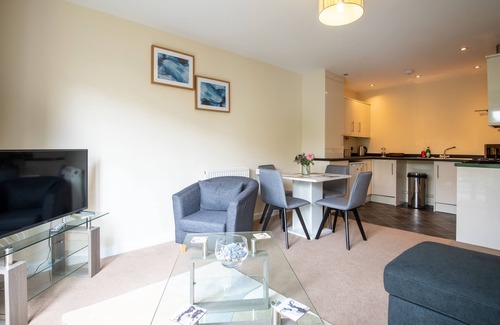 The apartment sleeps five and comprises of: Bedroom 1: king sized bed (or 2 singles on request); Bedroom 2: twin (or king on request); family bathroom (shower over bath); and an open plan living area with a lounge sofa bed for one (on request), incorporating comfortable seating and Smart TV, dining space for five and fully equipped kitchen with gas hob, fan oven, microwave and fridge freezers. Free WIFI is available.
