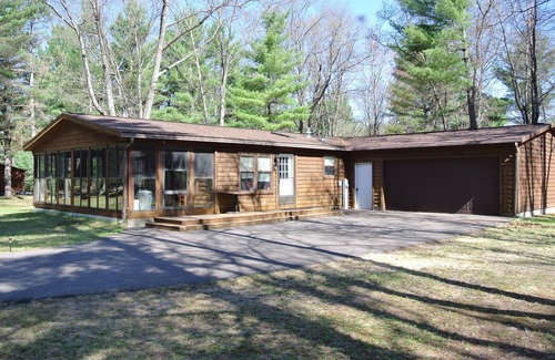 Welcome to our recently updated lake home located on Big St Germain Lake in Northern Wisconsin. St Germain is a small community located between Minocqua & Eagle River. We hope you will find our place has all the comforts of home and meets all your vacation needs. Our home sits at the rear of the resort with more space between units providing you more privacy. This 1,300 sq ft Ranch features an open floor plan, 3 bedrooms, 2 full baths, central air, gas fireplace, 55′ flat screen tv, blue ray dvd player in the living room & a 47’ flat screen / smart tv in the primary bedroom, home is served by Spectrum fiberoptic high speed internet with WIFI throughout the house. We also feature a large dining area, kitchen island, stainless steel appliances & a full length screened porch perfect for morning coffee or enjoy a drink as the day fades away. We’ve recently replaced all the beds with a king in the master bedroom, three twin beds in bedroom #2, two twin beds in bedroom #3 and a top of the line queen futon in the living room making our place perfect fit for larger families or guys / girls weekend getaways to stay in while comfortably sleeping up to 8 people. We have ample parking for trailers if you are bringing your boat, ATVs or snowmobiles.