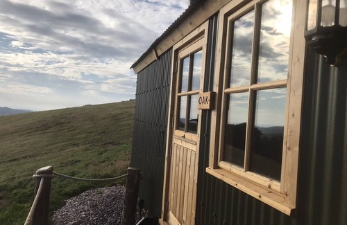 Oak Hut is a beautifully made Shepherds hut with a view, enjoying a rural location for the real 'get away from it all' experience. Incorporating proper warm showers, flushing loos; electric fridge and gas hob, and even a wood burning stove, plus a very comfortable double bed! Pets welcome.