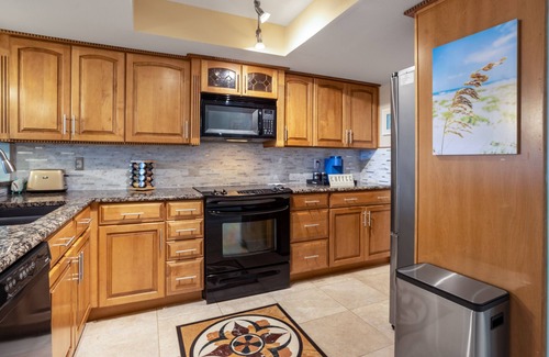 Inside your colorful and charming retreat, you will find a spacious main living room, complete with ample seating, a telescope, a large TV, and easy outdoor access. From here, you can lounge and appreciate the sounds of the tide coming in. When you can resist the tasty eateries in town, the well-equipped kitchen boasts stainless steel appliances, plentiful meal prep space, and many nifty gadgets, ensuring your cooking needs are all meant.