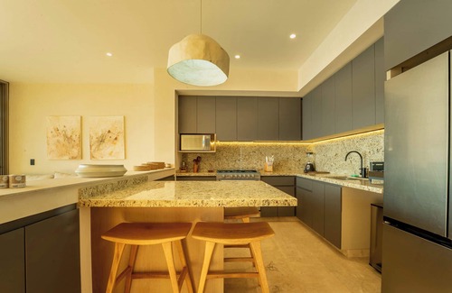 Set within a low-density community that blends into the landscape, the penthouse opens directly onto Playa Blanca—an endless stretch of sand perfect for morning walks or afternoon relaxation. The expansive outdoor terrace acts as an open-air living and dining space, complete with a private pool and breathtaking views of the ocean. Indoors, luxurious finishes and thoughtful design highlight natural light and scenery. The flexible layout makes it ideal for couples, families, or small groups.