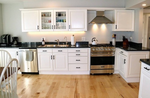Enjoy Maine and the way life should be in this spacious family home surrounded by woods and tranquil views of Muscongus Bay. This recently renovated 4000 sq ft house located on 7 acres includes three full levels of living and ocean views from every room. Check out the amazing stars at night or enjoy sunny afternoons from the dock in the summer. Prepare and enjoy meals in the large, well-stocked kitchen, equipped with a new Viking range, or grill dinner on the deck. Enjoy time together around the dining room table which seats 10-12. Or better yet, during the summer and early fall, head to the lobster pounds in Round Pond—a short walk or ride. It’s perfect for large or multiple families looking to explore mid-coast Maine, or couples who want to vacation together yet have your own space. Summer and fall are beautiful and winter and spring are tranquil. The house is available to rent year-round and is equipped with two wood stoves to stay warm on chilly evenings. High speed internet and boosters throughout the house make it a great option for those looking to work from home in the summer or off-season. Monthly rentals are available.