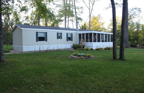 Clean mobile home located on the Oconto River walking distance to Chute Pond or fishing directly out the front door, direct access to UTV/ATV Dusty Trails system, rent for just the weekend or an entire week of vacation ,fully stock kitchen with everything needed for cooking , microwave coffee maker , gas grille , large screen porch for relaxing , TV , 2 bedroom 1 bath . Please reach out to us with any questions you may have. Please note our cottage we stay at is directly next door to this property