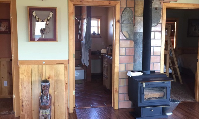 Our home is located right next to the Gila National forest in New Mexico and 45 minutes from the Arizona border. We are completely off the grid; however, solar powers our gourmet kitchen, appliances and television providing modern convenience for such a rustic atmosphere.