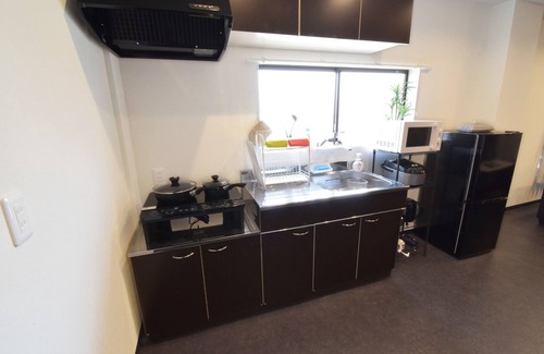 Bath towels dryers Drying rack shampoo toothbrush IH stove microwave oven rice cooker refrigerator tableware cooking utensils air conditioner in each room