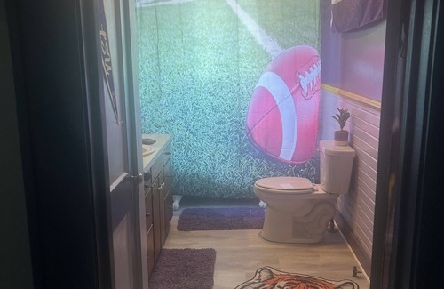 Everyone else uses the downstairs LSU bathroom. Towels and toiletries are in the vanity sink drawers (look for the labels).