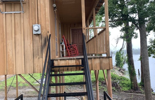 Our camp is just under 500 sq ft with an open floor plan. There is no elevator. There is access to a boat ramp next to the camp. It has a small porch to view the river. There is a small pit for grilling.