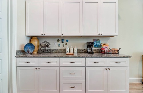 We have a fully equipped kitchen with stone countertops and all the cooking essentials needed.