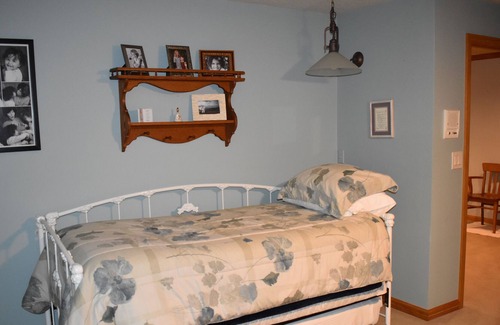 This lower-level apartment is in a botanical garden 10 miles west of Plymouth, WI. In the apartment layout, you will find three peaceful bedrooms rooms, a fully stocked kitchen, and a comfortable living area. An outdoor picnic table and shaded seating area adjacent to the gardens are available for your pleasure. There is ample on-site parking for your car and trailer.