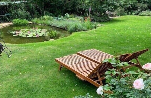 In the holiday home 'il giardino' there is an open bedroom with a large double bed (160 x 200), a living room with a fireplace, a pantry with a microwave and electric stove, a coffee machine with pads, a separate walk-in closet and a shower room. There are two more beds for children in the so-called gallery. We have comfortably furnished the holiday home in a country house style. The house also has a TV and WiFi connection and a neat table for the home office option. It has a spacious terrace with a view of a garden pond and its own patio and has its own separate entrance. The carport has storage space for bicycles and a car. Dogs are welcome, but should be interested in maintaining the garden beds. A basket of firewood costs 3.00 euros.