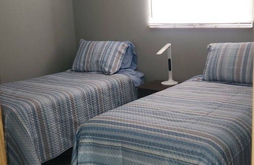 Labrador Lodge, Suite 2, consists of three bedrooms located just ONE mile east of the Aberdeen, South Dakota regional airport. Private entrance, only one step in the entire unit. Unit has washer, dryer, full kitchen with all necessary items, cable TV and internet. Hunters, bring your puppies and relax!! Three furnished bedrooms with five beds. One bedroom has a queen, the second has a queen bed and one twin bed and the third has two twin beds. All bedding, towels, basic items are provided. Pets are welcome with no additional charges, we love our pets we trust our tenants are responsible pet owners. No pets are allowed on beds. Big Fella's Bar and Grill is just a few blocks away and you can't beat them for a great burger or steak with an evening cocktail! Or, if you prefer, cook your meal at the lodge! We have a grill for barbecuing.