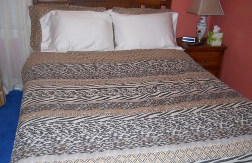 Beautiful Bedrooms in a Bungalow features three bedrooms: Beautiful Bedroom in a Bungalow #1 is the light blue bedroom which features a queen sized bed, voluptuous sofa, student's desk, ceiling fan, new carpeting, personal back yard entrance and a 32" flat screen television with a 24" personal surveillance monitor to ease one's uncertainties in an unfamiliar place. Room dimensions are 12' by 14'.