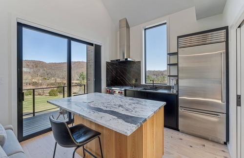 Welcome to the Orso Blu Guesthouse at Orso Blu Farm, a working lavender farm in the heart of Crozet and the Blue Ridge Mountains. This one-of-a-kind guesthouse's architecture and decor are modeled after Italian Alpine homes. The natural fir floors will envelop you with their warmth and the views will take your breath away. The guesthouse is located less than a mile from downtown Crozet, all wineries and 151, 20 minutes from Charlottesville on 76 acres of land, central and private. The views of the Blue Ridge Mountains are spectaculars. On the main living floor is the luxury kitchen, king bedroom with en-suite full bath and living room. The loft has an office area, couch and washer and dryer. On the lower level, the dining table, full bathroom and a very comfortable Italian queen sleeper sofa. This is not your typical sleeper sofa: no middle bar! The guesthouse accommodates four guests comfortably. Because of the very unique wood floor, we ask all our guests to take their shoes off and pets are not allowed. The home has stairs between all the floors. The working lavender farm has an acre of lavender plants that flower between early June and July. Guest are welcome to walk amongst the lavender plants or follow the trail that leads to Mint Springs Park for a challenging hike. You will not find another accommodation alike.