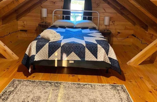 A cozy Amish built, log cabin awaits you for a very relaxing and comfortable experience with friends or family. A queen bed in the master bedroom, A queen bed in the main loft space and a double sleeper sofa will accomodate up to 6 people. You will find all the comforts of home, close to many fun and exciting things to do. We have a Park and lake view from the front porch. Sit by the camp fire and relax in the evenings. Cook a wonderful dinner on the charcoal grill. Outdoor lawn chairs are provided for use on the property. Fire wood can be purchased at many locations near by.
