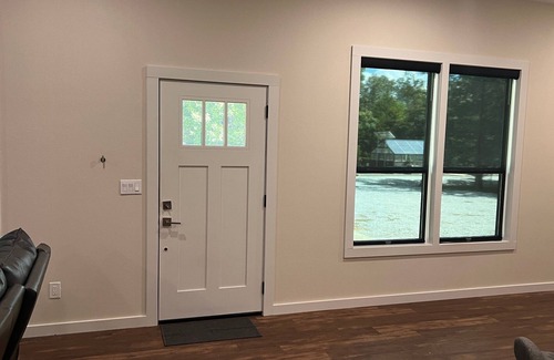 Escape to tranquility in this beautifully designed contemporary home, perfectly situated to take in the breathtaking views of the Ozarks only one mile off of Scenic Hwy 7 in the iconic Scenic Point area. This peaceful vacation rental is your ideal getaway, offering a perfect blend of comfort and style. This home is ideal for couples with pets! As you enter the home you are greeted with an open-concept living space bathed in natural light, featuring sleek furnishings and modern décor. The living area invites you to unwind after a day of exploration, while the fully equipped kitchen makes meal prep a breeze. The spacious bedroom boasts a plush king-sized bed and large walk in closet to store all of your extras out of sight. The large bathroom features an oversized walk-in shower and double back light vanities. Getting ready for your day is a breeze. Ozark Vista is the perfect couples stay while you enjoy the Jasper and Buffalo River area.