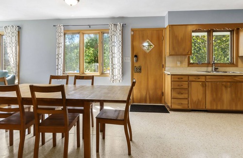Escape to a peaceful lakefront home just a short distance over the Illinois border. This single-family waterfront retreat is perfect for mid-to-large sized groups looking for a relaxing lake getaway within reasonable proximity to Chicago. Enjoy the patio area and ample yard space provided by the double lot, along with a jungle gym and basketball court for the kids. While the frontage is not best-suited for swimming due to an abundance of lily pads, guests can swim off the end of the pier, kayak (2 included with rental), or tie up a boat for the duration of their stay. There is also a communal beach/park area across the lake, providing even more options for outdoor fun.