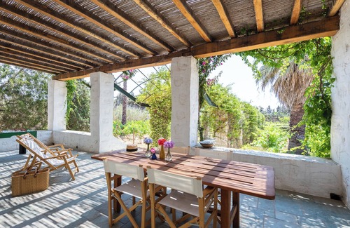Surrounded by private vineyards and olive and fruit groves, this grand 5-bedroom villa is just steps away from the famed Voutakos Beach. A quiet, safe getaway, Villa Locanda sports comfort and modern luxury. The spacious home is newly renovated and tastefully furnished with all comforts and beauty in mind.