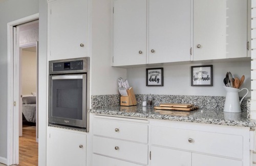Welcome to our centrally located 3-bedroom, 1-bath home in the heart of Eugene! Just 2.5 miles from the University of Oregon and 4.5 miles from Autzen Stadium, our cozy retreat offers convenience and comfort. The living room welcomes you with its cozy ambiance, complete with a large sofa and a 4K smart TV equipped with a Vizio sound system, perfect for those movie marathons with the family. The home is tastefully decorated with modern touches throughout. Outside, the expansive backyard is ideal for summer cookouts or letting your dogs stretch their legs. Experience Eugene from our inviting and comfortable home!