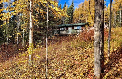 Private and peaceful, this cozy cabin is located in boreal forest at the end of a private road close to Fairbanks. You will enjoy exclusive use of this retreat during your stay. The hooting of a great horned owl on the mountain behind the house is only rarely disturbed by the distant moan of the locomotive winding through the valley below.The property that this cabin and the main house sits on feels remote even though it is less than 15 minutes from shopping and Fairbanks International Airport.