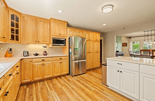 This three-level home has a functional layout that allows space for your group to be together yet offers privacy when desired.