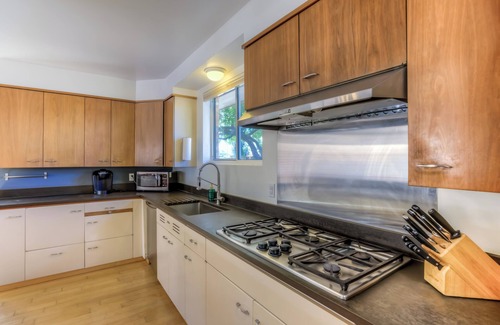 The main house surrounds the private courtyard and large windows flood the interior with natural light. Designed with guests in mind, it's the perfect place for families or friends. Most bedrooms include ceiling fans and the entire home is equipped with central AC. Our fully appointed kitchen has everything you need to make meals at home or brew a cup of coffee or tea first thing in the morning. All bathrooms have fresh, fluffy towels and sustainable bath products. Two cozy living rooms look out to the central courtyard and pool; one with a smart TV with streaming services.