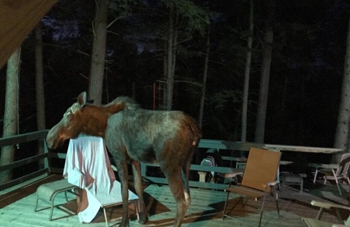 Custom made and specially designed 40 foot 2 push out luxury camper to satisfy the needs of anyone seeking serenity and comfort in the middle of nowhere. Nirvana Amidst beautiful Profile Falls allows for great viewing of wildlife and birds in their natural habitat. Listen and view the waterfalls, read on the double decks to the sounds of water falling over the rocks to the pool below. Swim in the beautiful waterfalls. Inside guests are enveloped in a one story space that was intentionally and literally built from the inside, out which ensured your eye was surrounded by nothing but 100% organic beauty. The smell of wood and birds singing will be the best background for a good read whilst lying on a sunbed on an elevated terrace. You will never forget your stay here ... that is also a live moose on my deck enjoying a short stay :)