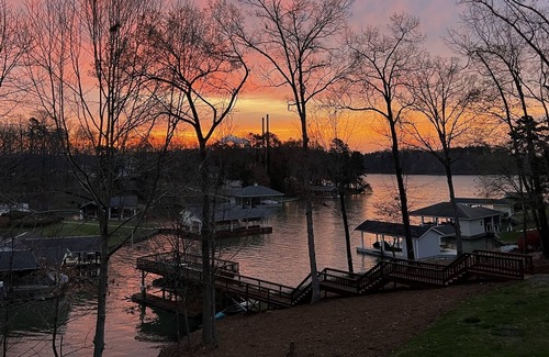 Enjoy this peaceful paradise on Hyco Lake! Bring your boat and water toys along or take advantage of the kayaks. This home features a rare top-deck for sunbathing and serenity at the back of a beautiful cove. There is ample room for relaxing at this 4-bedroom, 2-bathroom home, featuring a covered porch, patio, and a dock with seating. Relax in the hammock or float on the lake mat for the afternoon!