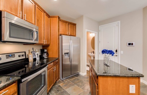 The bedroom is very spacious and has been furnished with a designer bedroom suite of furniture. The high-end king mattress is super plush with cool touch gel memory foam and the luxurious linens will make you feel pampered and give you a great night's sleep. You also have a 4K 55” SMARTV. The designer artwork throughout the condo creates a sense of serenity and ambiance to relax! The master bath has granite and double sinks with a soaking tub and large walk-in closet.