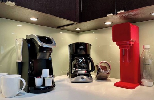 Over 1000 square feet of living, the entire condo has been upgraded! There is plenty of space in the kitchen to create gourmet meals, our dining table seats up to 6 comfortably, and the living room is perfect for relaxing after a fun day of sightseeing. There is a full size desk / office area on the main floor, if you're coming for a work related holiday or simply a place to set up your laptop, it's the perfect space! We even provide a Samsung tablet to use during your stay. The master bedroom with KING SIZE BED is very spacious, with tons of storage. And your private rooftop patio is a perfect addition for warm spring, summer & fall evenings! You will immediately have a feeling of your "Home Away from Home".