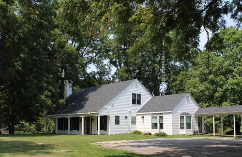 This home is perfect for large families or multiple families staying together. A 2,200 square foot two story newly remodeled home that sleeps up to 12 people. Main entrance is located on the south side of the house. Upon entering down the red brick hallway to the left or southwest side of home is the living room. This room has a large horseshoe shaped leather couch with a 65” television. Lots of windows give you a great view of the front yard and pasture. Entering the hallway to the left centrally located is the dining room. This room has a dining room table that seats eight people, chandelier light with a slate floor. The organ is from the original owners and is there for you to play and sing songs. Down a different walkway on the east side of the house is a very nice kitchen. Red brick floor, custom cabinets built to match the original’s and black granite countertop. Stainless steel stove, oven, dishwasher, microwave, coffee pot, coffee mugs, cookware, cooking utensils, plates, bowls, glasses, forks, knives and spoons are provided. On the east side of the house connecting to the kitchen is the breezeway. Second of the three entrances to the house this room hosts a small kitchenette with stainless steel sink and convection microwave. White wicker chairs, couch with a television. This room is nice for extra preparation and a second location to watch television. Located between the kitchen and breezeway is the laundry room. A washer, dryer and stainless steel deep sink with black granite counter tops. This is nice for long stays or washing clothes from having too much fun in the river. Entering the walkway passing the kitchen going through the dining room on the north side of the house is one large bedroom and hosts the third entrance to the house. Full bathroom one king bed, two single beds and a nice futon bed for children or young people and a television. Entering the dining room to the right is a half bathroom. Finishing with the downstairs next to the half bathroom is the library. Which has the same nice futon bed for children or young people. Going upstairs are two bedrooms and a full bathroom. At the top of the stairs is a hallway to the right and facing east is the first bedroom. A full bed, chester draw and television. Large window gives an excellent view of the driveway and main entrance. Back into the hallway to the left is the full bathroom. Everything is brand new except the original wood décor which was redone during the remodel. Finally entering the hallway to the left on the west side is the last upstairs bedroom. This room has a king bed, nightstands, original custom closets with built in draws. Large windows give you a great view of pasture and timber along the river. Upon request and no extra charge there is a 800 square foot remolded garage. Giving you the ability to sleep 4 more people in two pull out queen beds. It has two bathrooms with showers, sinks and mirrors. A kitchenet with counter, deep sinks and cupboards with a small table and six chairs are available. There are no plates, glasses or kitchen goods in the garage and you need to provide your own paper plates, glasses and plastic spoons and forks. It's meant for when barbequing outside giving you a separate food staging area with a water source. In the closet there is a washer and dryer. Two flat screen tv's mounted to the walls and a pool table. There are two large sliding doors that open making it convenient for barbequing and enjoying the outside and nature.