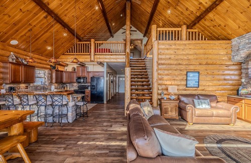 The inside is meticulously maintained and cleaned. It includes two master bedrooms (main floor and upstairs) and two downstairs bedrooms. If those bedrooms aren't enough then there are plenty of other sleeping spaces including a kids bunk in the main floor master bedroom (perfect for the little ones that need a quiet, dark space), a bed in the upstairs loft living room and another pull out in the downstairs living room. This house can sleep up to 16 adults comfortably! The kitchen is fully stocked and there is also a downstairs bar area if additional space is needed.