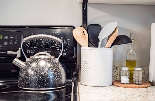 - Kitchen: Fully equipped with cookware, small appliances, dishes, utensils, plus staples like olive oil, salt, and pepper.