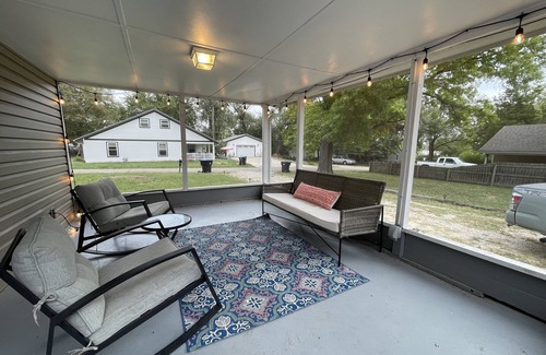 Whether you're looking for an escape from the city, visiting family or just passing through, this modern cabin is the perfect retreat. With the lake just across the street, bonfire with everything you need to make s'mores, watch the stars on the back deck, stream your favorite Netflix shows, bring your fur-babies and keep them safe in the fenced yard, relax on our luxury mattresses and enjoy a cup of coffee in the morning in the screened in porch. If you need anything, I'm a call away!