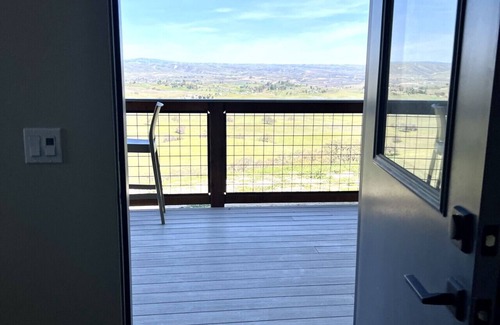 Introducing our luxurious guest suite above the oak trees with breathtaking views of the surrounding landscape. With deluxe linens, plush pillows, and a beautifully appointed en-suite bathroom, you`ll feel indulged at every turn. Sip on a glass of wine while watching hawks soar over the oak trees from your private balcony, or take in the stunning pink sunset from our sunset viewing area. Our guest suite also features both indoor and outdoor dining areas, allowing you to enjoy your meals with a view. Our bathroom is stocked with all the amenities you need, and guests can unwind in the rain shower or soak in the large tub. Our prime location offers easy access to nearby wineries, beaches, and hiking trails, making it the perfect place to experience the beauty of the area. Come and stay in our modern rooms, where rustic charm meets luxurious comfort. Elevate your vacation experience and book your stay with us now.