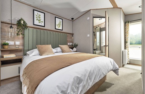 Two-bedroom caravan sleeping four people. Double bedroom with en suite and one twin. Large shower room. open-plan living space with well-appointed kitchen. Private decking area with comfortable furniture to take in the peace and quiet of the surrounding landscape.
