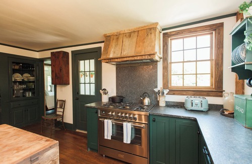 The house has been lovingly restored and updated by Full Circle Homes - as seen on Houses with History - the blacksmith house. There are two kitchens (one smaller in-law kitchen sink area), two bathrooms, 2 bedrooms on the first floor and three bedrooms on the second floor, dining room and living room. Guests can book the entire house or pair it with the field and the Black Walnut house for the ultimate wedding weekend!
