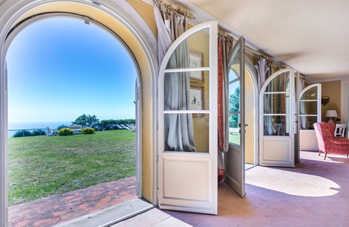 9-room villa 370 m2 on 2 levels. Spacious and bright, beautiful and tasteful furnishings: living/dining room. Open large living/dining room with digital TV. Exit to the garden. 3 double bedrooms, each room with shower/bidet/WC. Exit to the garden. 1 room with 2 beds. Large kitchen (oven, dishwasher, Gas stove, 5 gas rings, toaster, kettle, electric coffee machine). Exit to the garden. Shower/bidet/WC. Electric heating, gas heating, air-conditioning (extra). Upper floor: 1 double bedroom with shower/bidet/WC. 2 double bedrooms. Bath/bidet/WC. Patio roofed. Terrace furniture, barbecue, deck chairs (12), conservatory. Marvellous panoramic view of the sea and the countryside. Facilities: washing machine, children's high chair, baby cot for up to 2 year olds, hair dryer. Internet (WiFi, free). Please note: one double bedroom is outside the apartment. Maximum 2 pets/ dogs allowed. Large main house with 6 bedrooms and 6 showers/WC. Next door is the annex with living-dining room on the ground floor and double bedroom with shower/WC on the upper floor. When there are less than the maximum number of guests staying at the property, not all of the housing units will be available for use. IT050019C28ZBPLSAY
