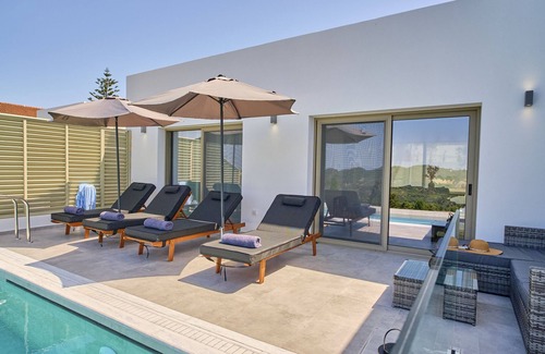 Our twin Polgar Villas comprises exceptional luxury accommodation with private pools and stunning views to Arillas and Diapontia Islands. Each Villa can sleep up to 4 guests in a living space of 95sq.m. Polgar Villas are situated in the North West Corfu at the village of Kavvadades. The location is suitable for couples and families who wish to spend relaxing and peaceful holidays with easy access (a few minutes driving) to sandy organized beaches and spots with unrepeatable ocean views and sunsets.