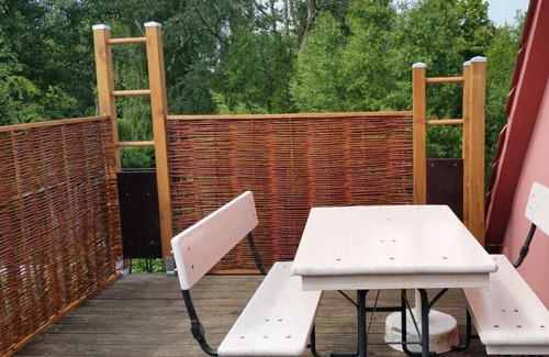 Cozy, light-flooded apartment with a 15sqm roof terrace. Idyllic and quiet in a rural setting, located by the village pond. Vacation with the dog.