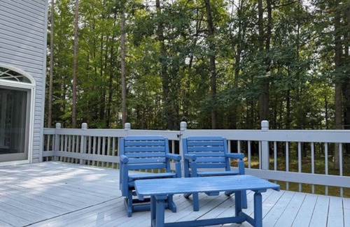 Beautiful 5 bedroom house with so many sleeping, visiting, and working options! Relax poolside or on the massive deck, play games in the lower level family room, or hang out in the spacious main level with cathedral ceilings, fireplace, and sitting area. This home is surrounded by Northern Michigan woods, peaceful and serene!
