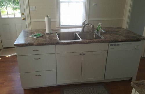 Sunny and contemporary kitchen with dishwasher, stove, microwave and full size refrigerator. Eat in style with seating for all. All new cabinets. All new appliances. Includes all the conveniences.