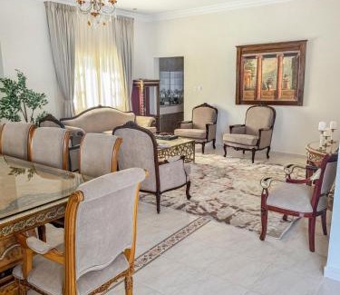 Prestigious Villa in Um Salal Izghawa is located in Doha, just 4.1 miles from Doha Festival City and 5.6 miles from Barzan Towers. The air-conditioned accommodation is 2.4 miles from Gulf Mall, and guests can benefit from private parking available on site and free Wifi. Qatar Sports Club Stadium is 7.5 miles away and Jassim Bin Hamad Stadium at Al Sadd Club is 7.9 miles from the villa. The spacious villa is composed of 5 bedrooms, 2 living rooms, a fully equipped kitchen, and 5 bathrooms. A flat-screen TV is featured. Guests can also relax in the garden. Doha Golf Club is 6.6 miles from the villa, while Qatar International Exhibition Center is 7.3 miles away.