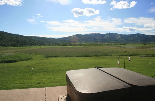 Stay comfortably and enjoy a large private home with high end finishes throughout on 4 beautiful secluded acres. This 3 level property is perfect for large family gatherings and is dog friendly! Each room is uniquely designed with 1 king bed, 3 queen beds, 1 child bed, 1 full bed, 1 twin bed and 1 full sofa bed. This property also features a garage, mudroom, private jacuzzi, pool table, ping pong table, jazucci tub and steam shower in master bathroom, upstairs in-law apartment. In addition, there are 3 separate common areas and a separate study with french doors. The kitchen includes plenty of counter space, 2 ovens (1 convection), large prep island and kitchen eating island (seating for 3). The great room area includes a gas fireplace to snuggle up to in the evenings, large beautiful dining table (seating for 10) for intimate family meals. The home has both heat and AC along with strong Wifi, surround sound in common areas via Sonos so you can play your favorite music while you relax or entertain. Great Room TV with Roku. Gym TV is an internet TV. Home features both a front deck and large back deck with 4 Adirondack chairs, outdoor sofa, hammock, private jacuzzi and outdoor table (seating for 6) and large grill. Basement playroom has full wet bar, pool table, ping pong table, separate gym w/eliptical machine and free weights and TV. Large private backyard w/large deck/fire pit and amazing views, perfect for a relaxing morning coffee or afternoon relaxation. The outdoor fire pit has seating for 8. There is also plenty of outdoor parking that easily can accommodate 7+ vehicles and large RV’s. This private home has spectacular mountain views and stunning sunsets and is located on a quiet rural street on the coveted south side of Teton Valley. Centrally located w/quick and easy access to all area amenities. Property is a 4 minute drive to the town of Victor & has access to Targhee National Forest via the Smith Canyon trailhead just a 5 minute walk down the road. Only 30 minutes to the town of Jackson Hole as well as Jackson Hole Mountain Resort and Grand Targhee Resort renowned for world class skiing and mountain biking. Yellowstone and Grand Teton National Parks are within an hour drive and within 20 minutes you can be floating and fly fishing on either beautiful Teton River or the S. Fork of the Snake River.