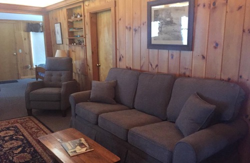 The cabin has old world charm with knotty pine walls and cathedral ceilings. Full kitchen and dining room table that can sit 8, large living room, 2 bedrooms and a full bath. Living Room has 3 sitting areas- (1) TV area with 2 full couches, 2 chairs and limited use fireplace . (2) Game/Relax area with full couch, card table and chairs (3) Sleeping area with 2 twin beds. (Will be converted to sitting/Tv area in summer of 2018). Master Bedroom has a queen bed/Second Bedroom-Full Bed and Bunk Bed. Cooking Grill outside and extensive covered exterior space for snowmobiles, picnic tables, etc.