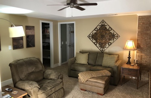 Our cool and comfortable two bedroom apartment with private patio on Lake Lanier. Comfortably fits 4 and is centrally located on a quiet street, just 10 minutes to Lake Lanier islands and Mall of GA . Renovated in 2014 2BR/2 bath with private entrance. Marina less than 5 minutes from house.On other sites we are listed as Super Host. More pictures to come.